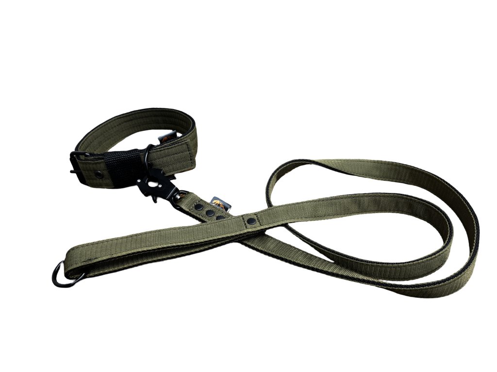 Set of a quality 4cm collar and 150cm leash with black fittings.