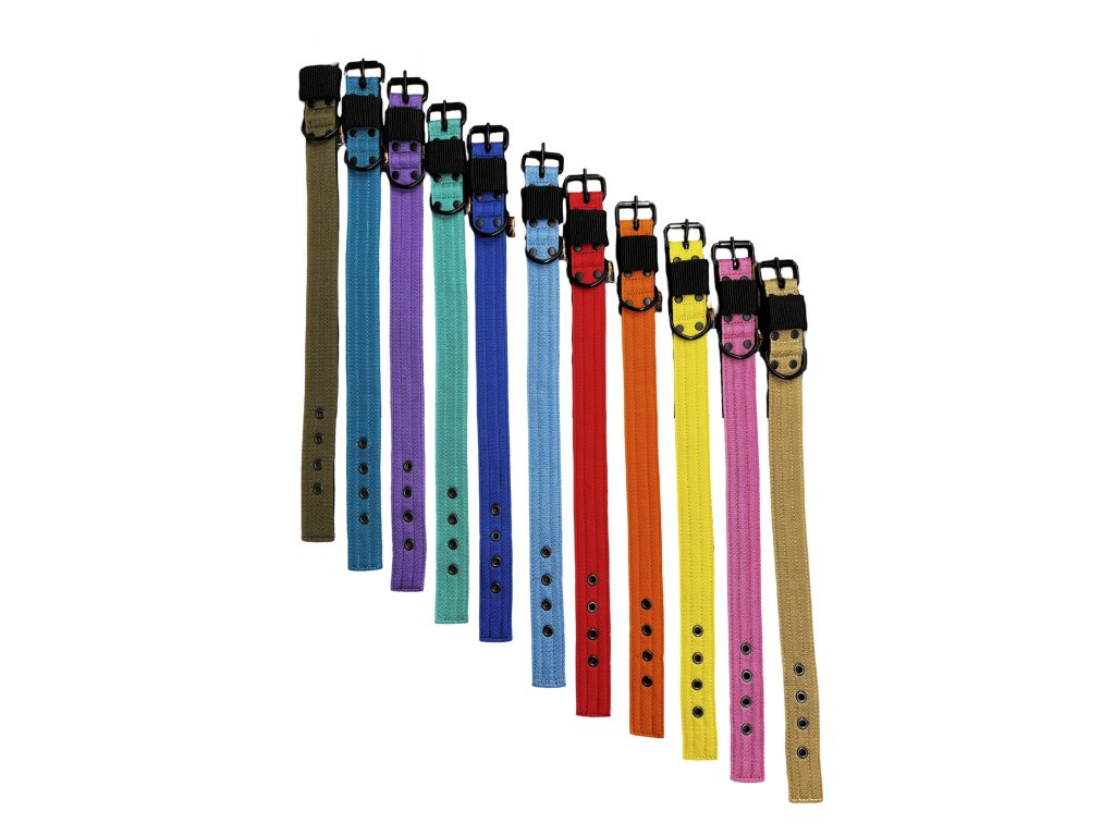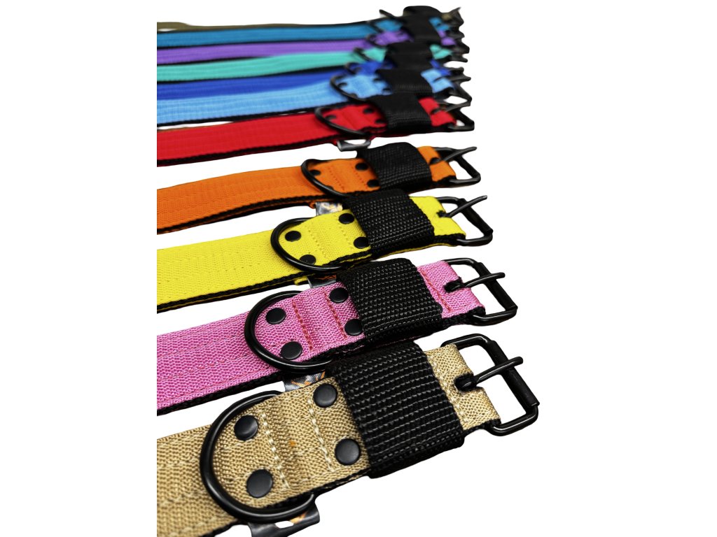 High-quality nylon collar, 4cm (1.57inch) wide, with welded black fittings and classic fastening.