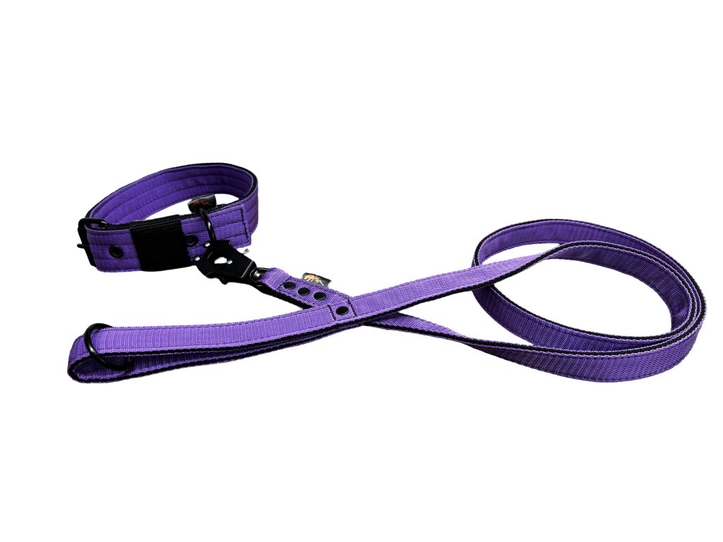 Set kvalitního obojku 4cm a vodítka 150cm s černým kováním.
