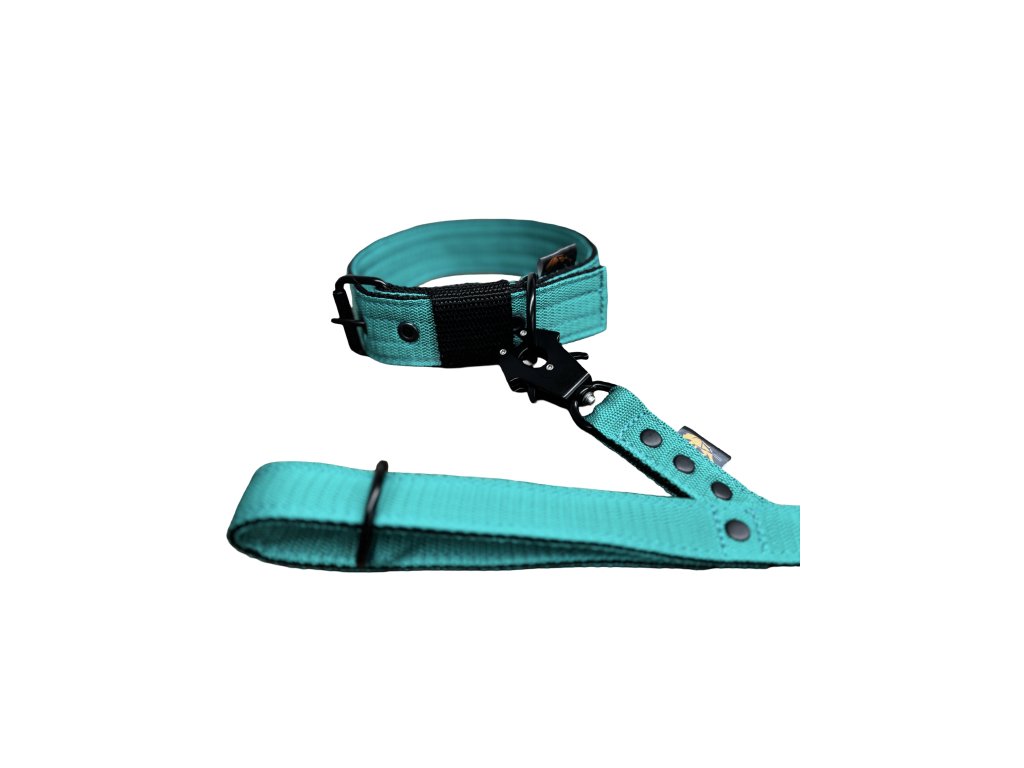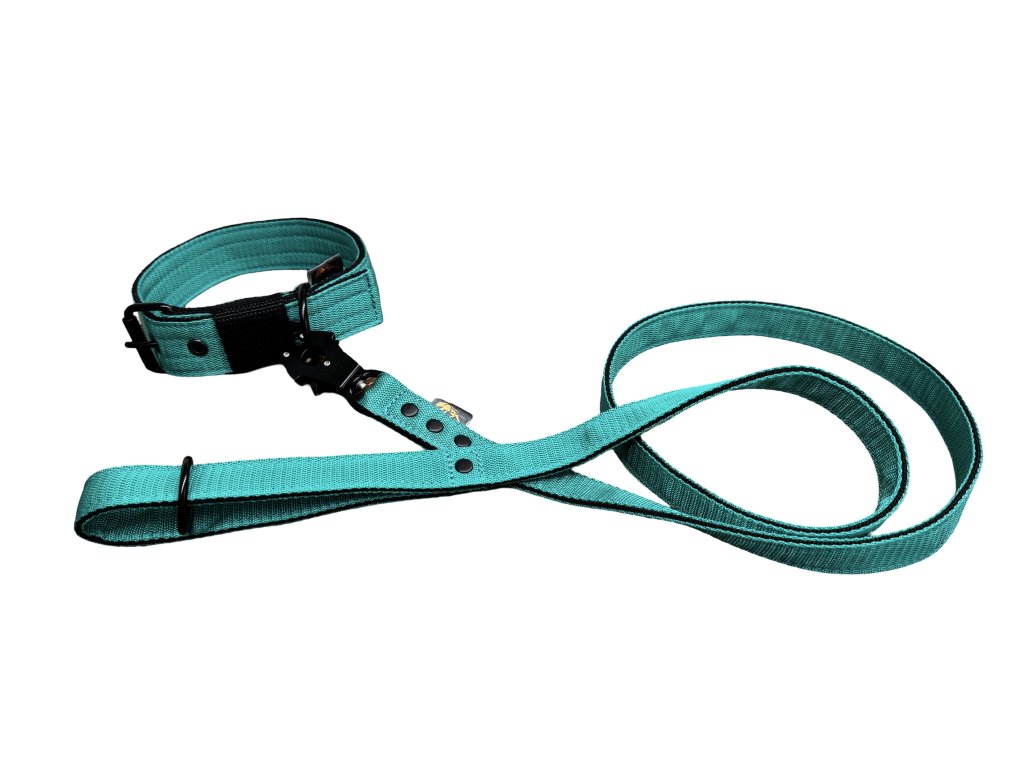 Set kvalitního obojku 4cm a vodítka 150cm s černým kováním.