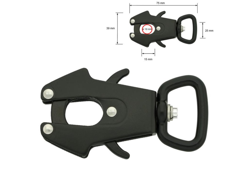 • kovová nebo hliníková karabina pro bezpečné uchycení